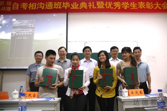 2013年5月12日上午10:00, 达德教育集团汕头分校与汕职院联合举办的自考相沟通本科班毕业典礼暨优秀学生表彰大会在汕头职业技术学院金园校区隆重举行,出席本次典礼的领导及嘉宾有:汕头职业技术学院院长沈民奋教授,达德教育集团副董事长、总裁蔡伟先生,汕头职业技术学院副院长王茂春教授,汕头职业技术学院成人教育部总支书记、主任陈新良先生,汕头职业技术学院院办、教务处、成人教育部及各院系领导,达德教育集团董事、汕头分校校长李小洪先生。同时,部分毕业生及优秀学生共同见证了这次典礼。