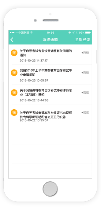 重要的报名和考试等时间节点、缴费信息及其他重要信息的通知,系统会自动在此提示考生,如果考生开通了短信提醒,则会同时发送短信提醒。
