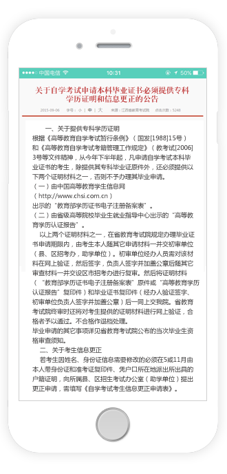 伴我考APP跟踪和收集自学考试相关部门的所有公告信息,原文在此处发布,而且会根据考生所在城市和所选考试类别自动筛选呈现。