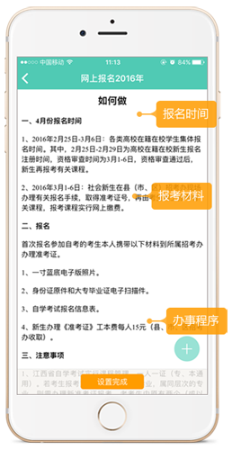 网上自学考试的信息很多,但大多是不全,甚至仿冒官方网站发布虚假信息误导学员的,在密集的网络信息里学员很难判定信息的真假,更困惑自己到底该如何做?伴我考每一个步骤都有详细的“如何做”,告诉你真实的时间、地点、官网、办事程序和官方电话地址等。