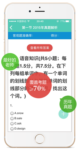 自学考试的每一门学科都是全国统考,试题全部来自于考试题库,我们收集了公共基础课程如:英语二、中国近代史纲要等科目的历年真题,并聘请了经验丰富的老师分析题库,好的老师能吃透考试大纲,准确把握考试要点。我们的真题试卷有详细的答案解析,考点覆盖70%,还可以在线练习和测试。