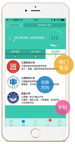 我的大学我做主,不再做学历小白,自学考试是非常难通过的学历提升方式,没有之一,但有伴我考相伴,通过率70%以上,快速获取学历才是真正的目标。伴我考APP会介绍重点院校的详细情况、招生简章及热门专业,伴我考,帮助你上重点大学 !