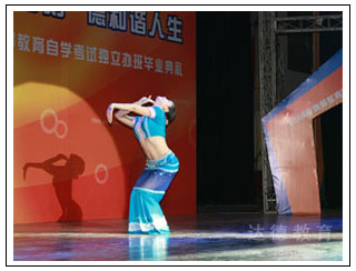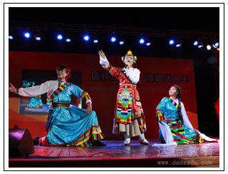达德学员表演的独舞《傣女》 达德员工表演的歌舞《天路》