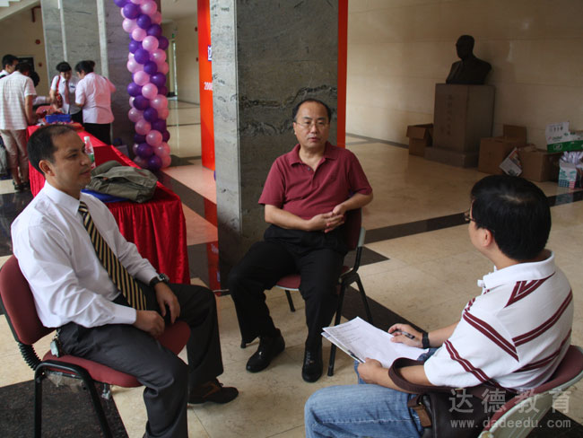图片说明: 达德教育集团董事长、院长李晓珍/中山大学高等继续教育学院院长赵过渡同时接受媒体采访