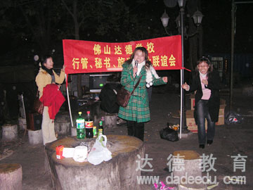 2006年元月8日,南海镭岗公园内,欢声笑语,冽骨的寒风挡不住学员们洋溢的热情,他们在此欢聚在一起,举行新年联谊活动。大家围在熊熊的火炉旁,一边烧烤,一边交流。还不时高歌一曲。加深了彼此间的友情。共同祝福新的一年。