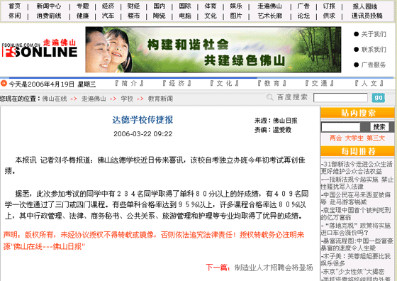发布时间:2006/4/19        发布地区:佛山达德        信息来源:佛山日报