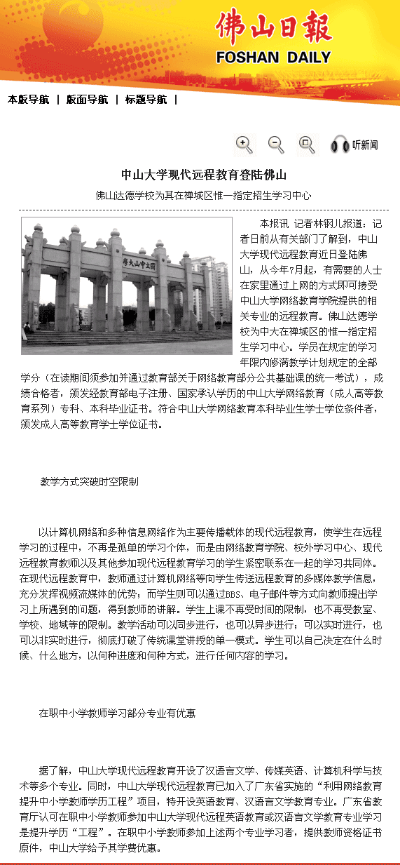 中山大学现代远程教育登陆佛山 |