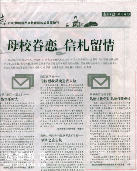 7月14日,由佛山市禅城区和民办教育协会主办,南方日报佛山办事处承办的佛山市禅城区民办教育成果展联欢会分别在佛山市东方广场和金马剧院举行,佛山市达德学校作为佛山民办教育自考的应邀单位参加会展。