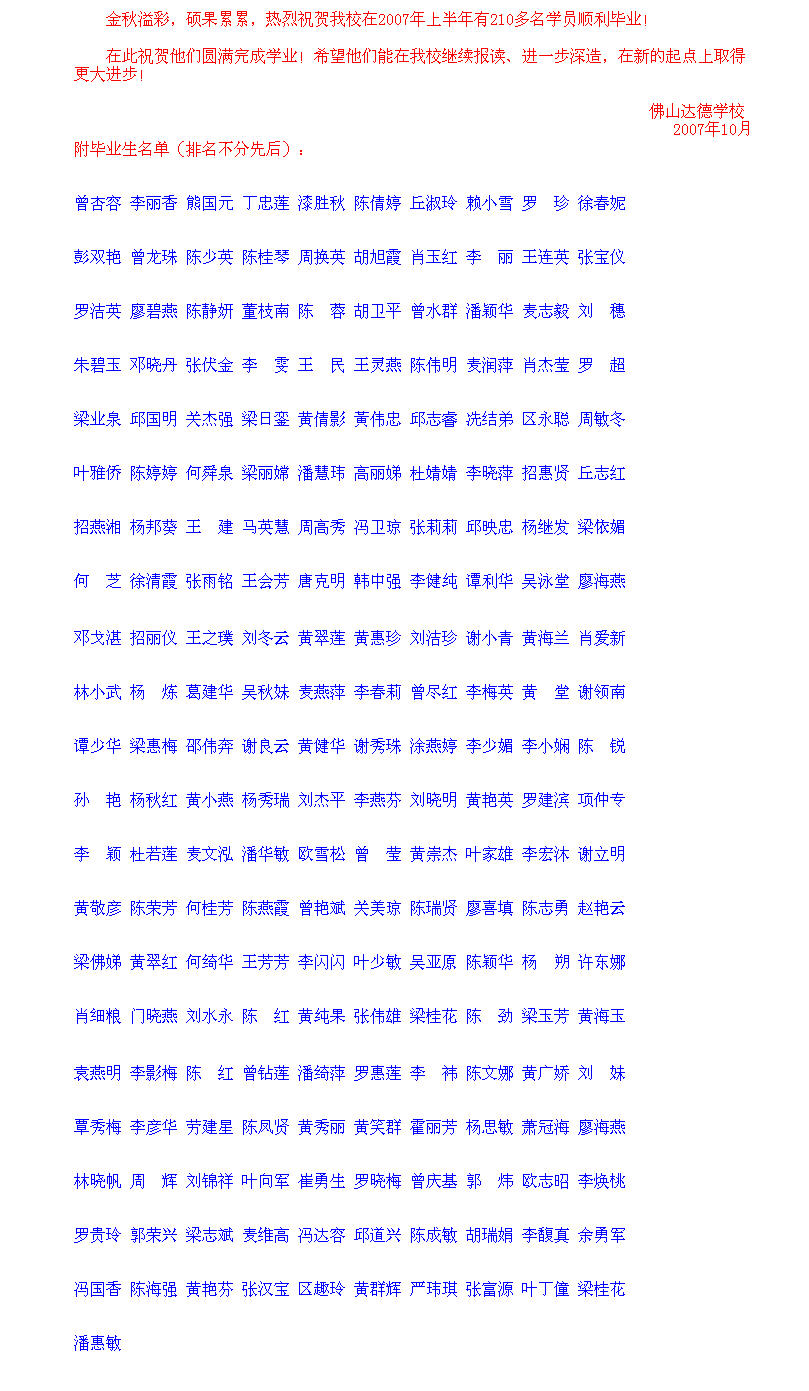 热烈祝贺2007届(上半年)学员顺利毕业!