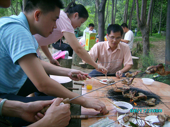 北京奥运会如火如荼的进行着,这班年轻人也激情昂扬的为奥运庆贺,为自己的考试取得优秀成绩庆贺!你瞧,八月十七日狮山公园的绿影下留下了他们跳动的身影,录下了他们欢呼的声音。他们是中大行政管理本科专业和商务秘书管理专业的部分学员在班主任和班委的带领下共同举办的主题为“绿色烧烤,双喜临门”的联谊活动。他们的热情留在了小小的相片上,这段快乐的时光印记在了小小的相片上,他们为胜利歌唱的喜悦画在了小小的相片上。