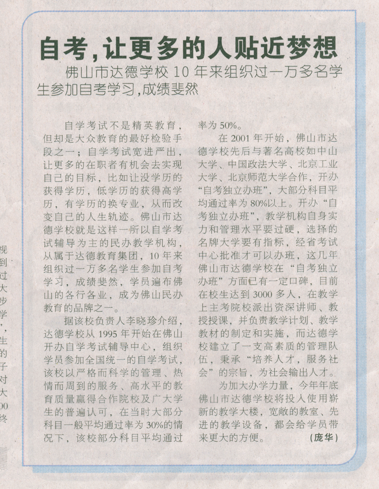 自考,让更多的人贴近梦想---《珠江时报》报道