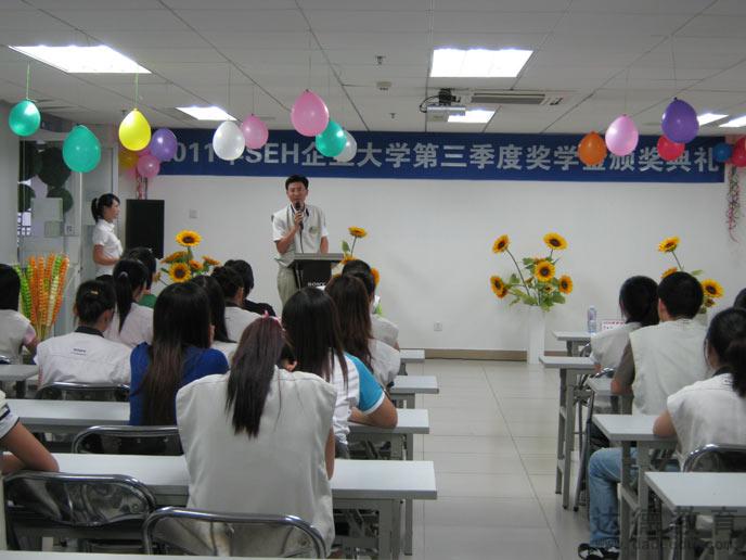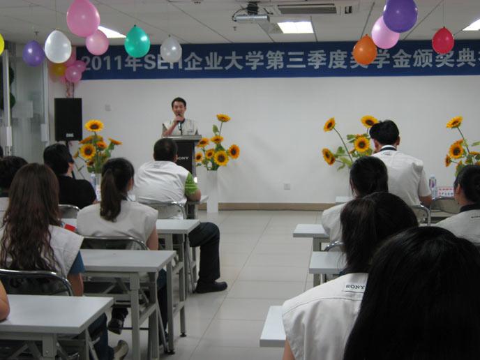 9月28日18点,索尼电子华南有限公司SEH 企业大学在D栋2楼培训室隆重举行11年7月份奖学金颁奖典礼。每一个到场的嘉宾与同学都对此次颁奖典礼充满了热切的期待。