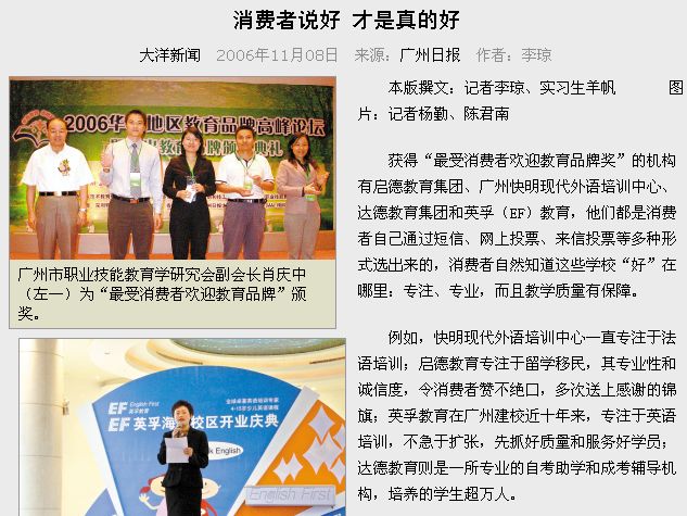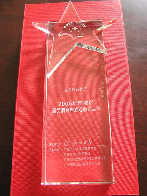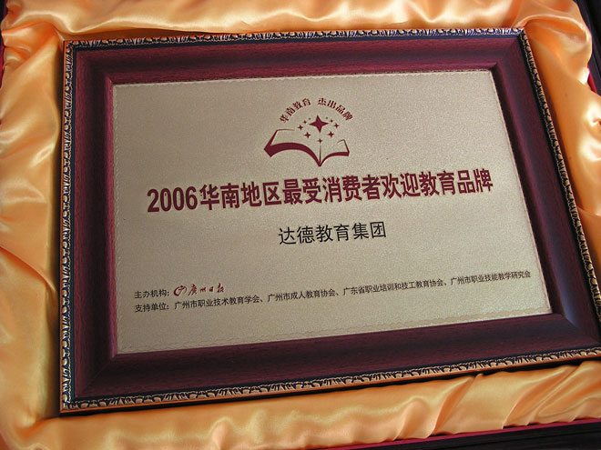 达德教育荣获2006年华南地区最受消费者欢迎教育品牌[图]