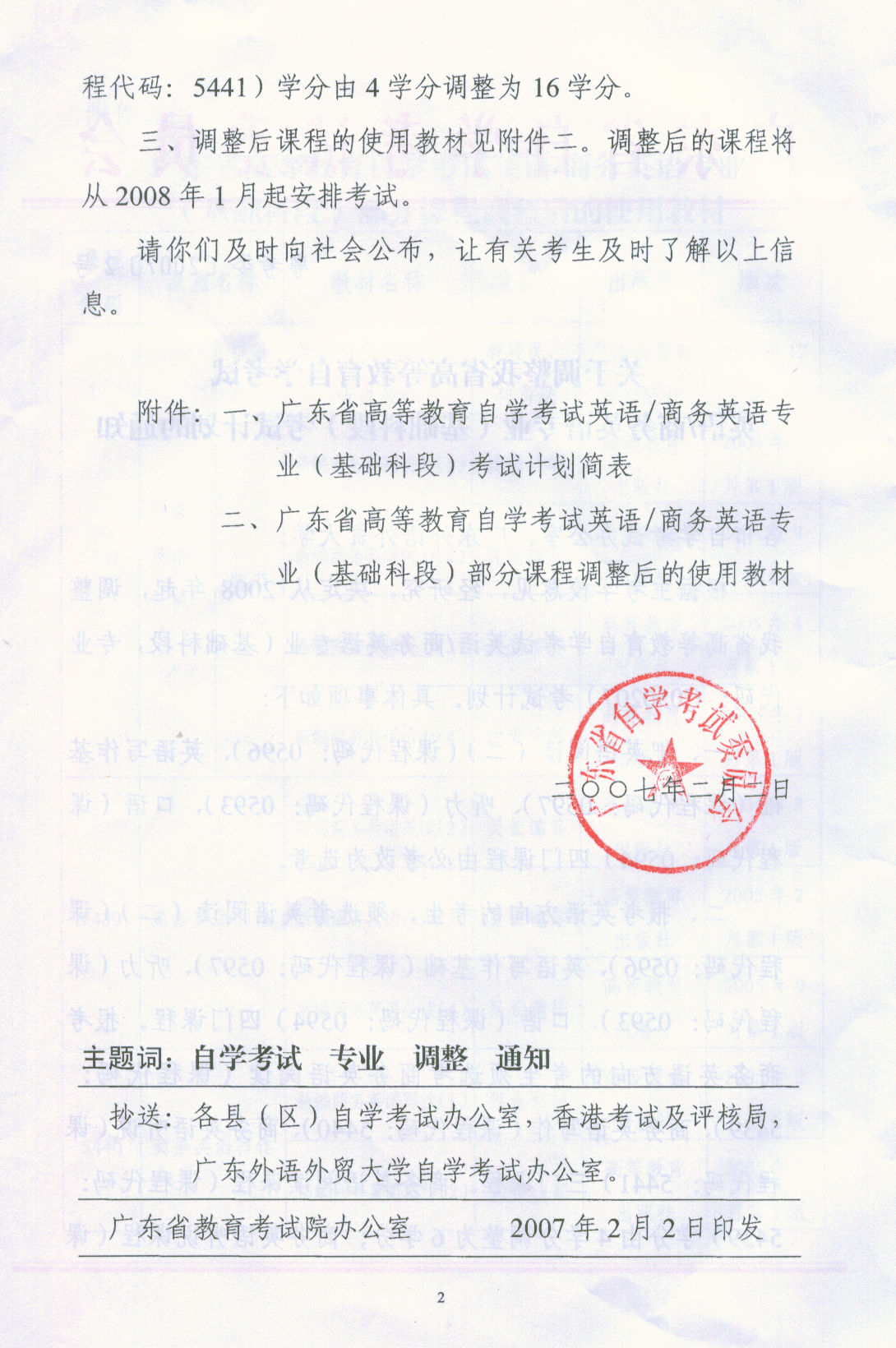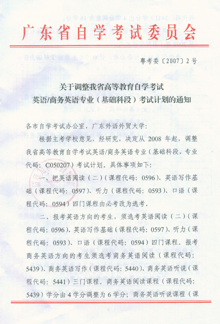 调整我省自学考试英语/商务英语(基础科段)考试计划的通知