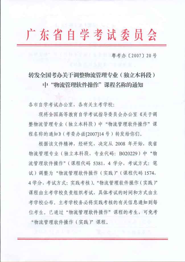 转发关于修订我省高等教育自学考试物流管理专业(专科、独立本科段)考试计划的通知