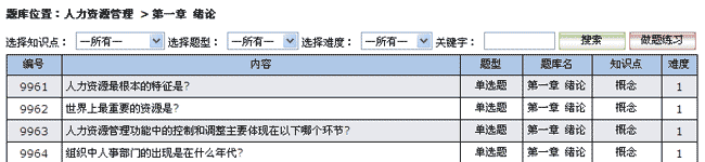 以下是人力资源管理课程第一章的试题列表,您可以设定条件搜索题目,浏览题目,直接点击题目或者点击右上角的【做题练习】按钮随机抽取题目练习。