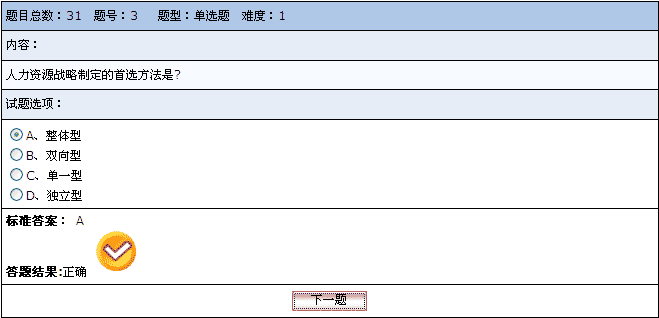 完成试题,点确定,系统就会自动对您的答案做出判断,并提供标准答案。要继续做题,点【下一题】按钮,结束做题可关闭当前窗口。