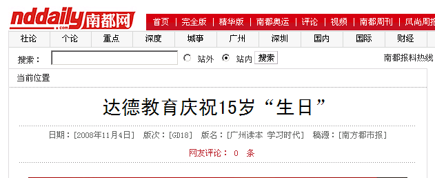 发布时间:2008/11/6 发布地区:达德教育 信息来源:南方都市报