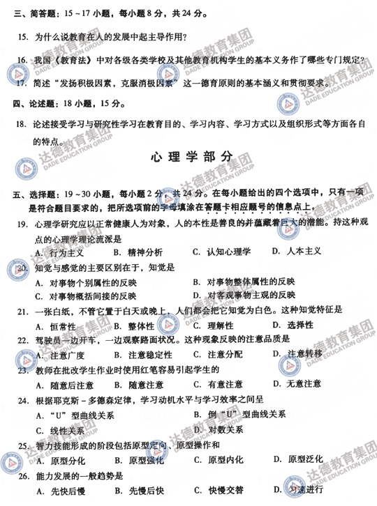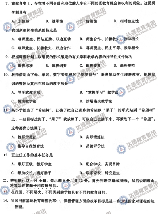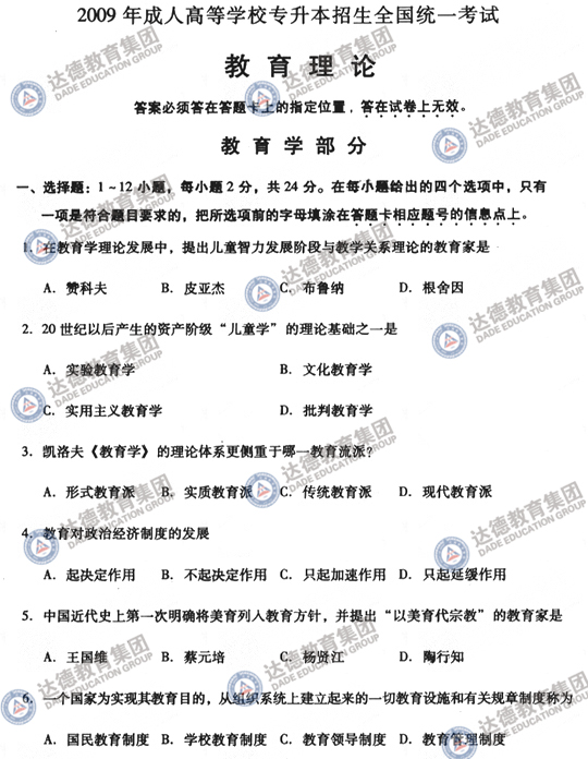 2013年全国各类成人高考专升本教育理论试题和参考答案及解析