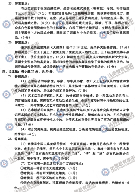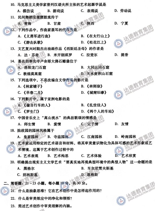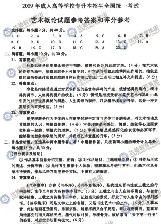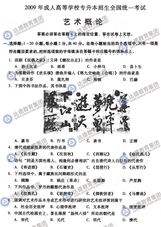 2009年成人高考专升本《艺术概论》试题及参考答案
