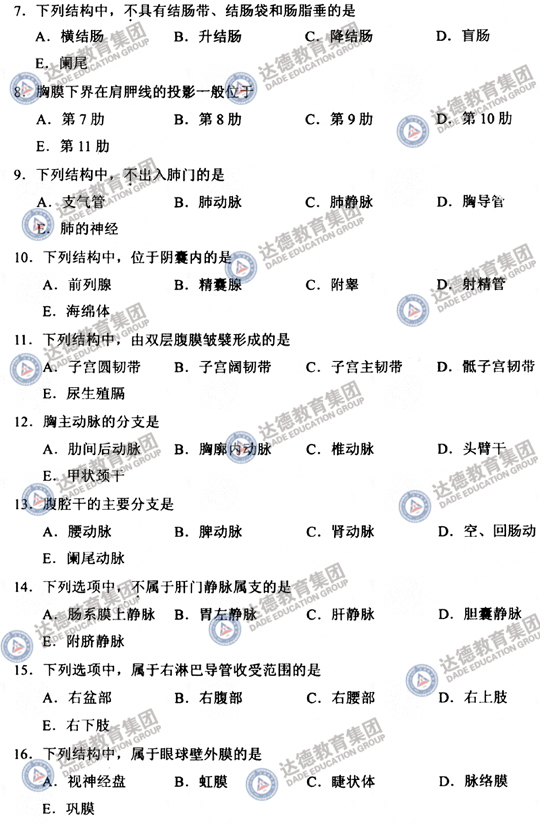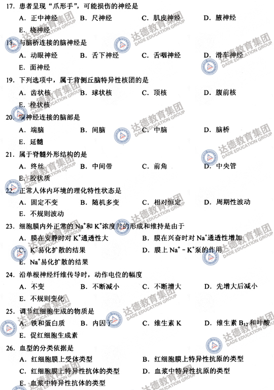 2008年专科起点升本科成人高等学校招生全国统一考试医学综合试题及答案