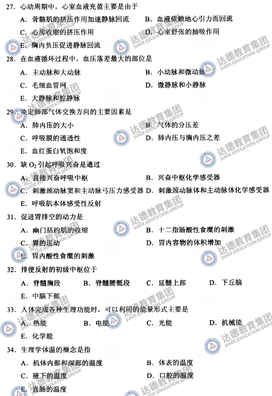 2010年成人高考专升本医学综合真题及答案
