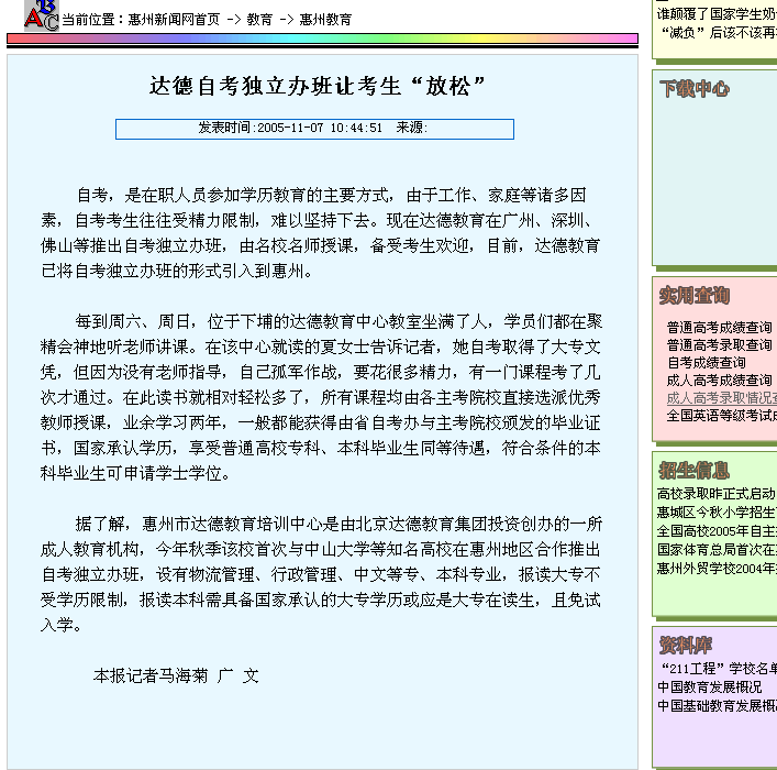 发布时间:2006/2/17 发布地区:达德教育 信息来源:www.hznews.com