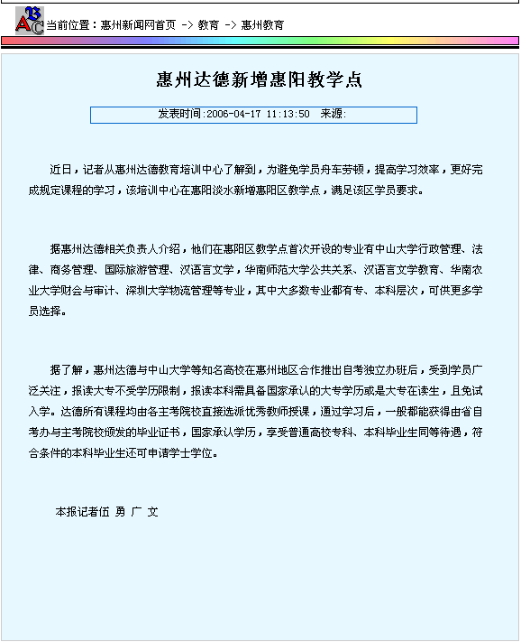 惠州达德新增惠阳教学点 |