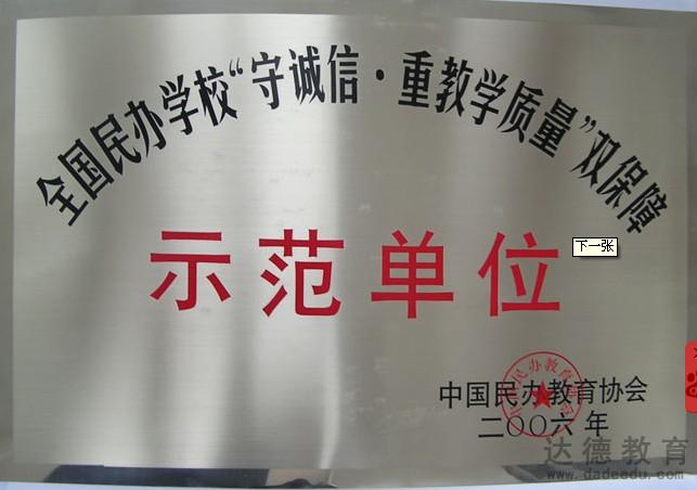2006年荣获中国民办教育协会全国民办学校“守诚信、重教学质量”双保障示范单位荣誉称号